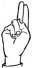 На ћирилици написано МИЉАНА ЛУДОШКИ састоји се из 13 слова [?]. Исписано ћириличном једноручном азбуком за глувонеме: